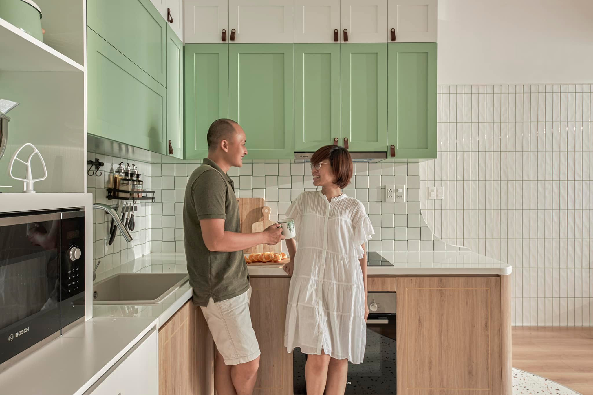 Mọi lần mua nhà, thuê nhà, anh chị đều tự thiết kế sắp đặt, hoặc nhà mua lại đã được thiết kế từ chủ cũ. Lần này do nhà giao hoàn thiện của chủ đầu tư không đẹp, và do rút kinh nghiệm nhiều căn trước, anh chị thuê đơn vị thiết kế và thi công sửa đổi kết cấu để phù hợp nhu cầu và công năng sử dụng của nhà mình hơn.