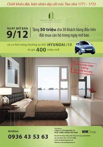 Vào đầu tháng 12/2012, Chung cư Green Bay hoàn thành xây thô tầng 17, chuẩn bị cất nóc 2 tòa nhà 17T1 và 17T2. Để chào đón sự kiện này, Chủ đầu tư đưa ra hàng loạt ưu đãi đặc biệt cho khách mua căn hộ.