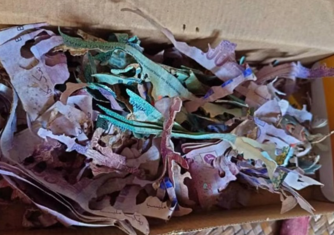Bức ảnh lan truyền cho thấy những tờ tiền trong hộp bị mối cắn nát, gần như không thể cứu vãn.