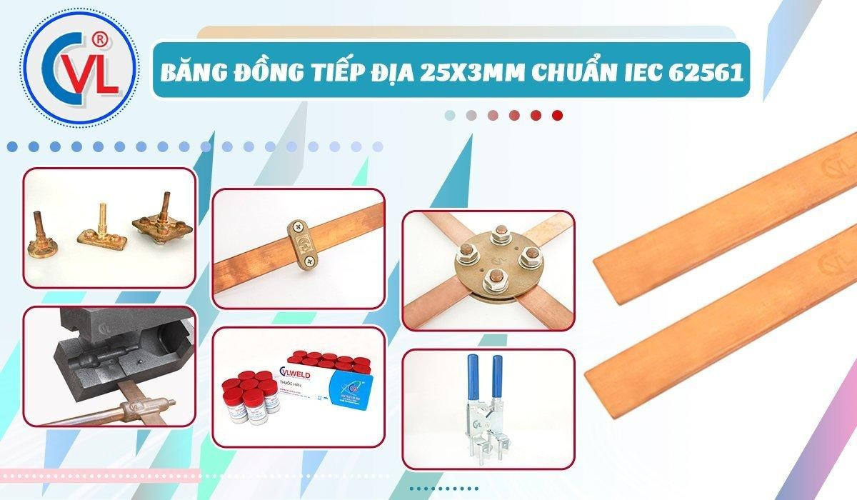 Băng đồng thoát sét tiếp địa 3x25mm Cát Vạn Lợi đạt chuẩn IEC 62561 được sản xuất bằng tấm đồng lá - Cathode và được ép thành cuộn thanh đồng. Kỹ sư cơ điện thường dùng sản phẩm này để phân tán dòng sét xuống đất an toàn mà không gây ảnh hưởng đến các thiết bị xung quanh.