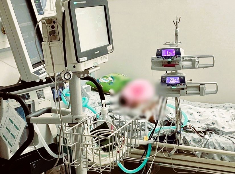 Do thể trạng suy dinh dưỡng, tình trạng phổi xấu, việc điều trị cho bé có nhiều thách thức. Bệnh nhi phải thở máy với thông số cao, truyền dịch, dùng thuốc kháng virus và kháng sinh, hỗ trợ nuôi ăn, nâng cao thể trạng.