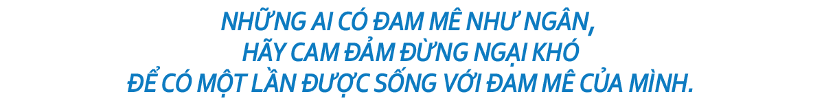 “Mình may mắn nhận được sự động viên của gia đình, đó là niềm hạnh phúc to lớn. Nhưng mình có thể khẳng định trước khi nhận được sự động viên đó, bản thân cũng đã phải nổ lực rất nhiều để xây dựng lòng tin rằng con đường mình chọn là phù hợp và đúng đắn nhất”, Ngân chia sẻ.