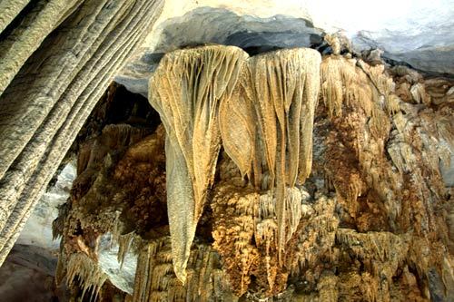 Nhiều cụm thạch nhủ tạo thành một bức tranh hoành tráng.