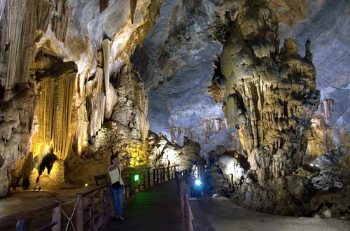 - Đi qua chiếc cầu gỗ được công nhận là dài nhất Việt Nam, bạn sẽ bắt gặp một quần thể thạch nhũ kỳ ảo đẹp đến mê hoặc giữa không gian khoáng đạt, chẳng khác chốn bồng lai tiên cảnh.