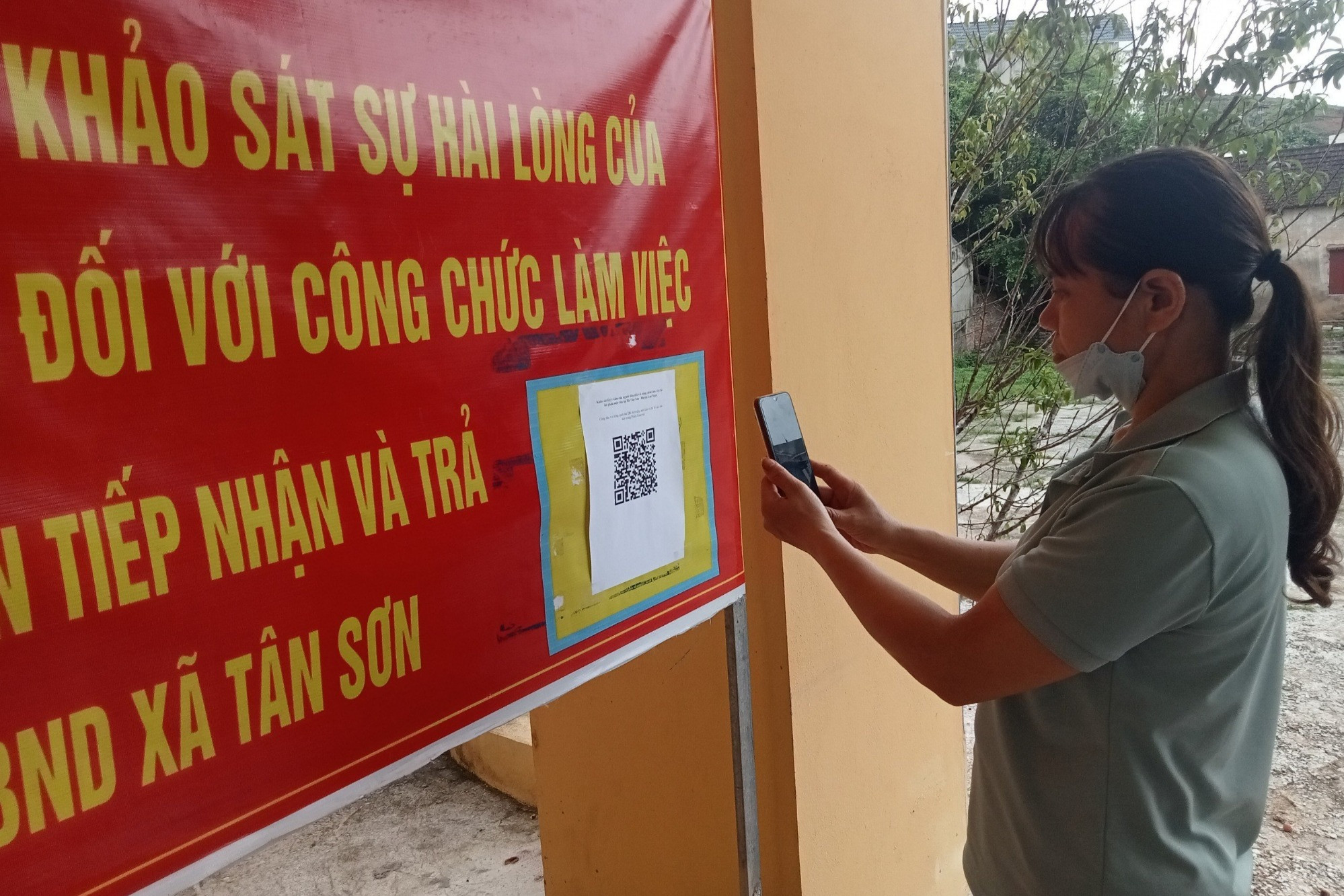 Người dân quét mã QR Code khảo sát mức độ hài lòng với công chức. Ảnh: Huy Hà