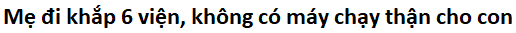 Chị cẩn thận kể tên các bệnh viện như giãi bày tâm trạng. Chạy thận cấp cứu, tức là khi con có biến chứng, mệt, phù, mới được đến viện lọc máu. Khi đó, viện phí cũng không còn được Bảo hiểm y tế chi trả như chạy thận định kỳ. Nỗi lo này chồng lên nỗi lo kia, chị bất lực.