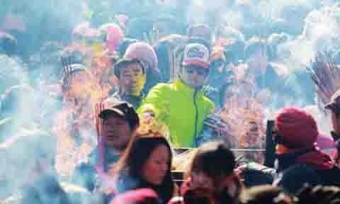 Hàng ngàn người đang chen nhau để được thắp hương tại ngôi chùa Yonghe Lam, Bắc Kinh (Ảnh: China Daily)
