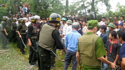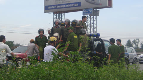| Lực lượng Công an Nghệ An giải cứu con tin và bảo vệ 2 “cẩu tặc” trước sự bức xúc của người dân. |