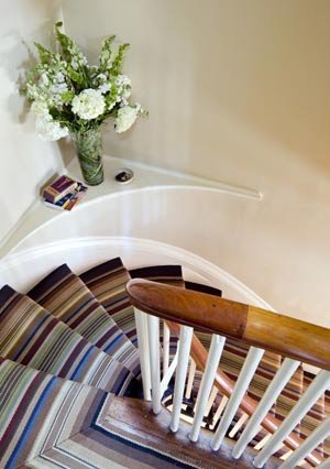 Không giống như vẻ đẹp của gỗ và đá cẩm thạch, việc trải thảm cho cầu thang lại đem đến cho không gian lên xuống này vẻ đẹp mắt, quyến rũ riêng.