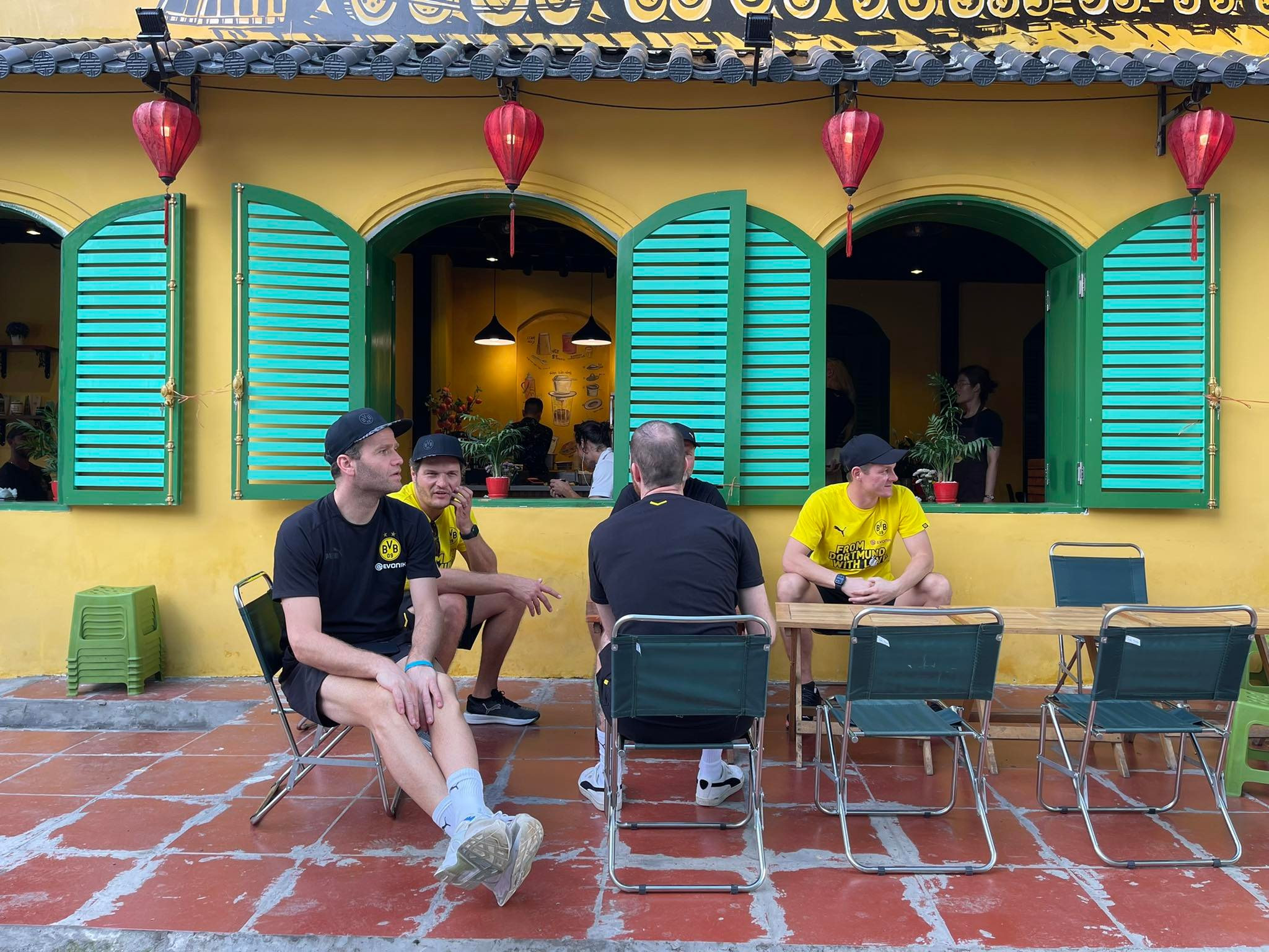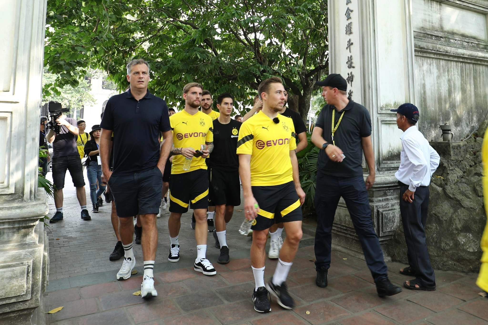 Rạng sáng 29/11, các thành viên CLB Dortmund đặt chân tới Hà Nội để chuẩn bị cho trận giao hữu rất được chờ đợi với tuyển Việt Nam, diễn ra vào lúc 19h00 ngày 30/11 trên SVĐ Mỹ Đình. Sau ít giờ nghỉ ngơi tại khách sạn, các cầu thủ đến từ đội bóng nước Đức có nhiều hoạt động để giao lưu, tìm hiểu, trải nghiệm với văn hóa, con người Việt NamChuyến du đấu tại Việt Nam của CLB Borussia Dortmund nằm trong chuỗi du đấu Đông Nam Á. Trước khi sang Việt Nam, Dortmund đã đến Singapore và MalaysiaTrong đội hình của CLB Borussia Dortmund đến Việt Nam lần này có những ngôi đáng chú ý như tiền vệ Marco Reus và trung vệ Mats Hummels. Dù có mặt tại Việt Nam nhưng Marco Reus bỏ ngỏ khả năng ra sân bởi anh gặp chấn thương, không thể cùng tuyển Đức tham dự vòng chung kết World Cup 2022.Các cầu thủ Dortmun thích thú với xe xích lô ở Hà NộiCác cầu thủ dạo phố và ghi lại những khoảnh khắc thanh bình của Thủ đôCác cầu thủ Dortmund cũng không quên thăm cầu Thê HúcĐoàn quân của HLV Edin Terzic có hoạt động kín lịch khi sang Việt Nam.