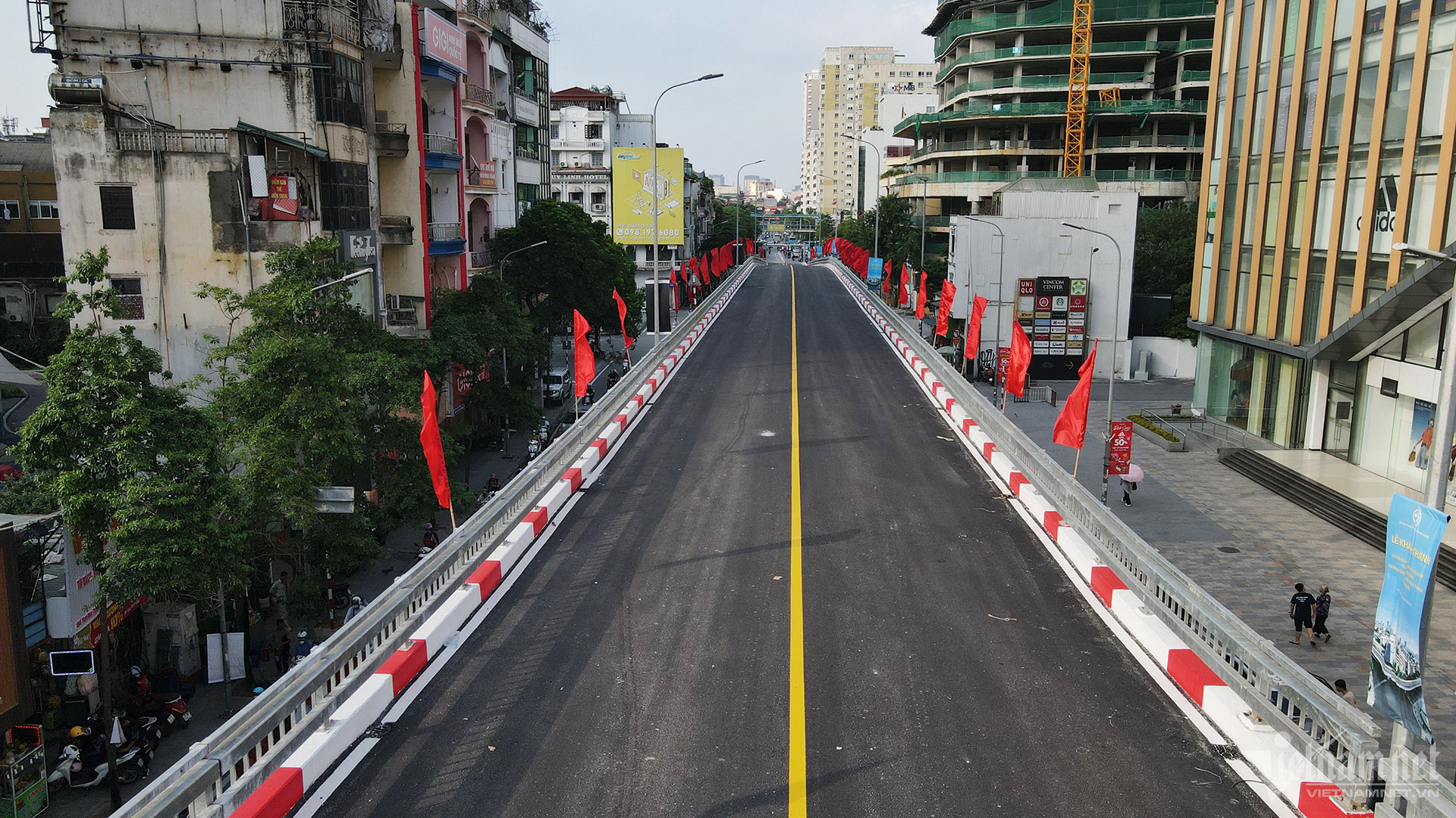 Cầu vượt chữ C tại nút giao Chùa Bộc - Phạm Ngọc Thạch (quận Đống Đa) vài giờ trước lễ thông xe. Cầu dài hơn 320m, được khởi công từ tháng 10/2021, tổng vốn đầu tư khoảng 150 tỷ đồng, là một trong những dự án giao thông quan trọng của Hà Nội.