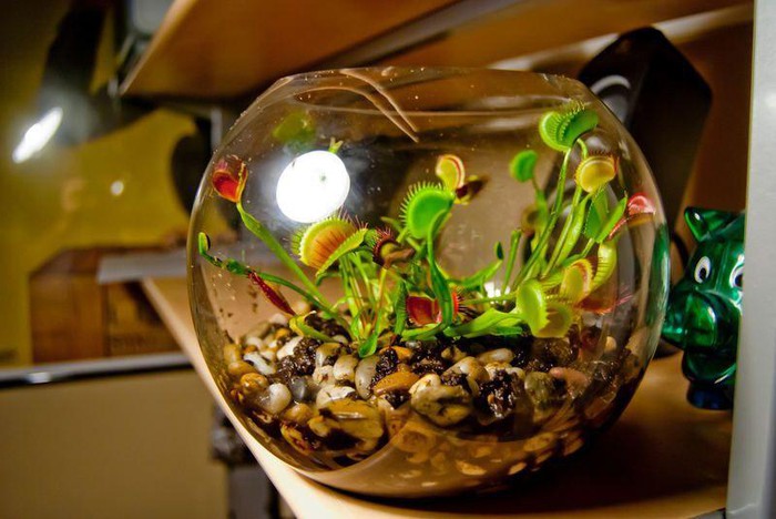 Không ai thích nhìn những con bọ nhỏ vo ve quanh bếp, nhưng trong căn phòng chứa đầy vụn, rác và mùi thơm lôi cuốn, bạn dễ dàng tìm thấy chúng. Để loại bỏ các loài bọ gây hại này, bạn có thể thêm vào quầy bếp một cây bắt ruồi hay còn gọi là cây nắp bình. Đây là loại cây kiểng lạ, đẹp, sống lâu năm và rất dễ trồng. Bạn chỉ cần giữ cây tránh xa ánh sáng Mặt Trời trực tiếp và tưới nước. Ảnh: Pinterest.