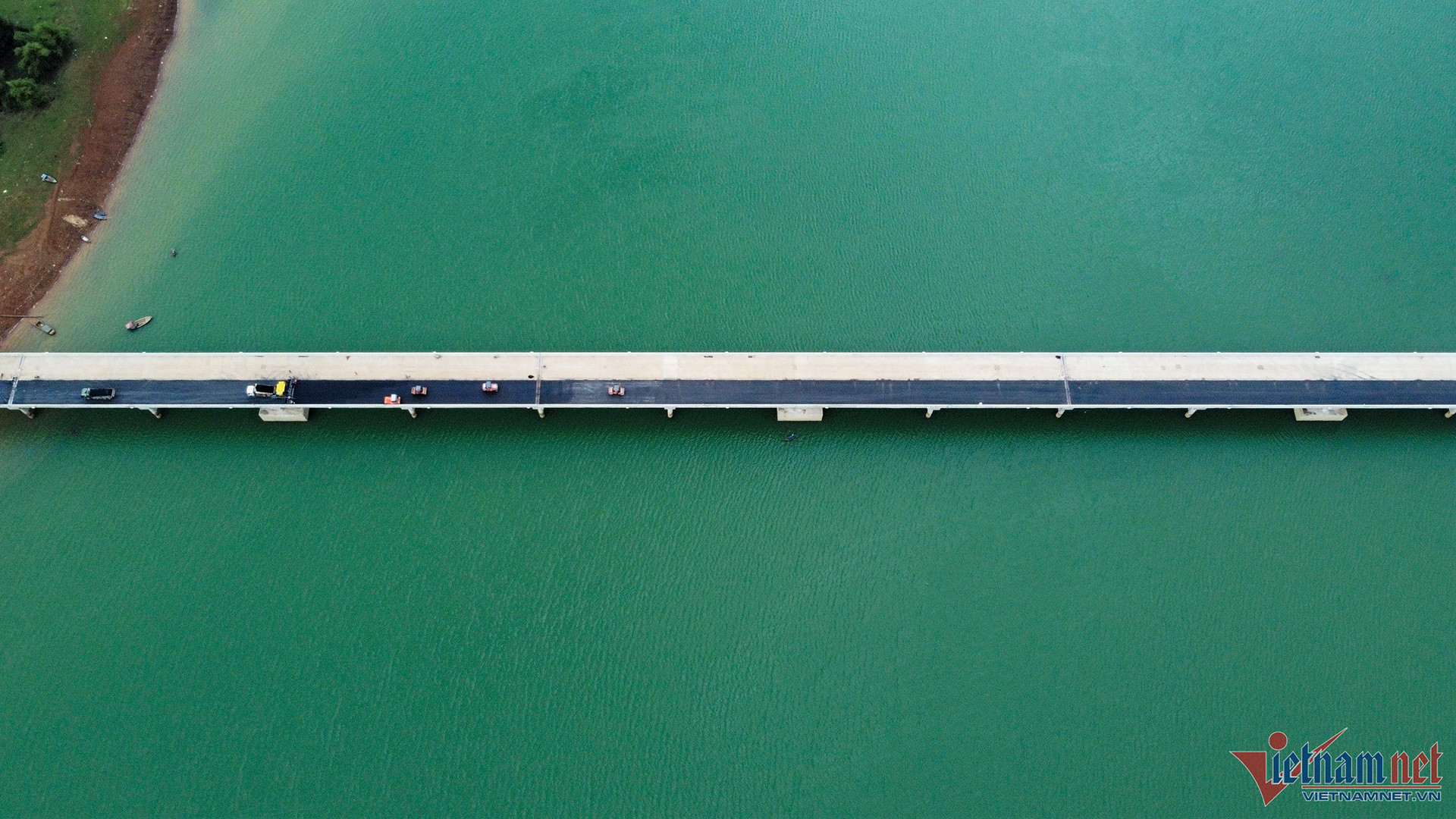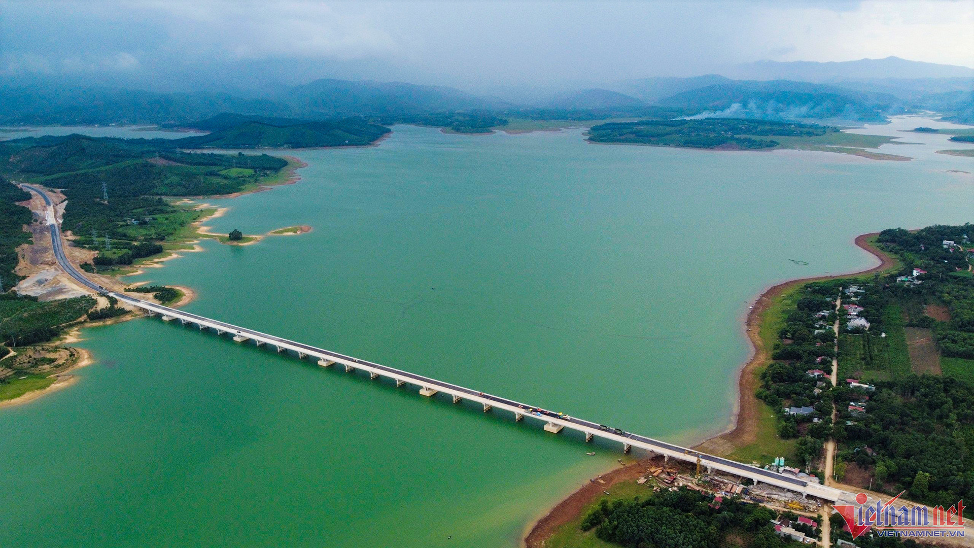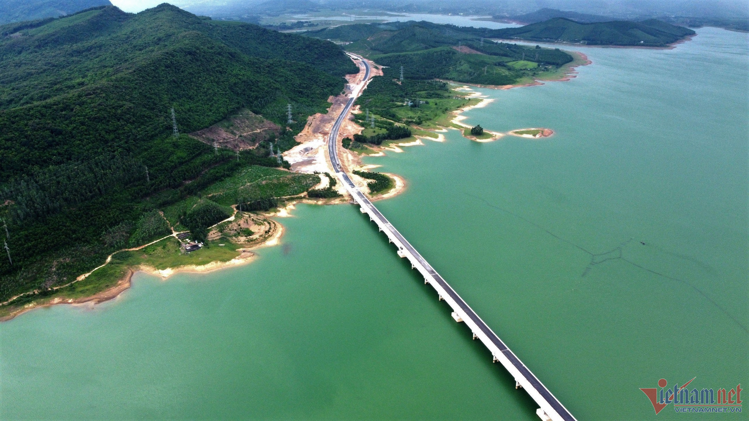 Cây cầu qua hồ Yên Mỹ có chiều dài gần 1km nằm trong dự án thành phần đầu tư xây dựng cao tốc từ đoạn giao với quốc lộ 45 đến Nghi Sơn có tổng chiều dài 43,28km (qua huyện Nông Cống và thị xã Nghi Sơn, Thanh Hóa), tổng mức đầu tư hơn 5,5 nghìn tỷ đồng.Đây cũng được xem là cây cầu có chiều dài nhất tuyến cao tốc. Dự án do Ban Quản lý dự án 2 làm chủ đầu tư và được chia làm 3 gói thầu xây lắp (từ 01 - XL đến 03 - XL).Trên tuyến chính của dự án thành phần cao tốc Quốc lộ 45 - Nghi Sơn có 18 cầu. Trong đó, cầu vượt hồ Yên Mỹ do Tổng công ty Cổ phần Xuất nhập khẩu và xây dựng Việt Nam (Vinaconex) thi công, giá trị xây lắp 240 tỷ đồng. Hiện trên mặt cầu bắt đầu được trải nhựa.Theo thiết kế, cầu vượt hồ Yên Mỹ có 24 trụ, 2 mố và 25 nhịp Super T (mỗi nhịp dài 40m).Hồ Yên Mỹ (thuộc địa bàn 3 huyện Nông Cống, Như Thanh và thị xã Nghi Sơn của tỉnh Thanh Hóa) có diện tích rộng khoảng 2.800ha, là hồ nước ngọt lớn nhất tại Thanh Hóa. Trao đổi với VietNamNet, ông Hoàng Đình Luân, Giám đốc Ban điều hành gói thầu XL03 dự án Quốc lộ 45 - Nghi Sơn cho biết, tuyến cao tốc Quốc lộ 45 - Nghi Sơn đã cơ bản hoàn thành.Nhiều đoạn tuyến trên cao tốc đã cơ bản đã hoàn thành thảm bê tông nhựa nóng lớp cuối, các nhà thầu đang khẩn trương thi công cuốn chiếu, thảm cấp phối đá dăm các đoạn dỡ tải theo dõi lún, dựng dải phân cách, gia cố mái taluy, đóng cọc hàng rào bảo vệ, hàng rào hộ lan, lắp đặt đường ống điện, cấp thoát nước...Trong một vài ngày tới, đơn vị hoàn thành việc trải thảm và các hạng mục khác. Trong ảnh, công nhân hoàn thiện khu vực đặt tấm chống lóa.Cao tốc QL45 - Nghi Sơn có điểm đầu giao với đường Nghi Sơn - Thọ Xuân, nối tiếp với đường cao tốc Mai Sơn - QL45 tại xã Tân Phúc, huyện Nông Cống và điểm cuối tại nút giao với đường Nghi Sơn - Bãi Trành, kết nối với đường cao tốc Nghi Sơn - Diễn Châu tại xã Tân Trường, thị xã Nghi Sơn.