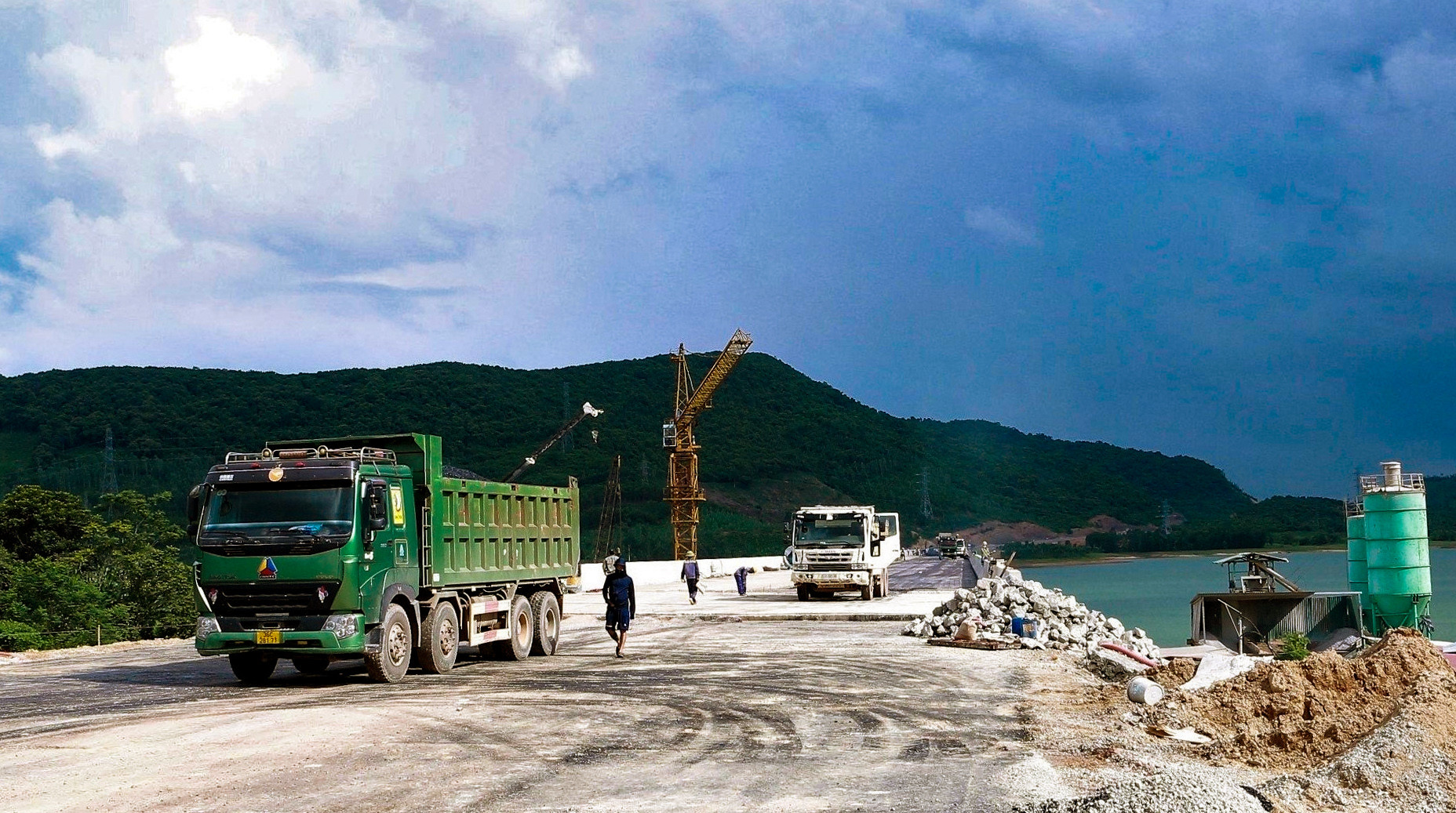Cầu vượt hồ Yên Mỹ thuộc thị xã Nghi Sơn (Thanh Hóa) đang được nhà thầu gấp rút thi công để kịp thông xe cao tốc Bắc Nam đoạn QL45 - Nghi Sơn và từ Nghi Sơn - Diễn Châu trước ngày 2/9.