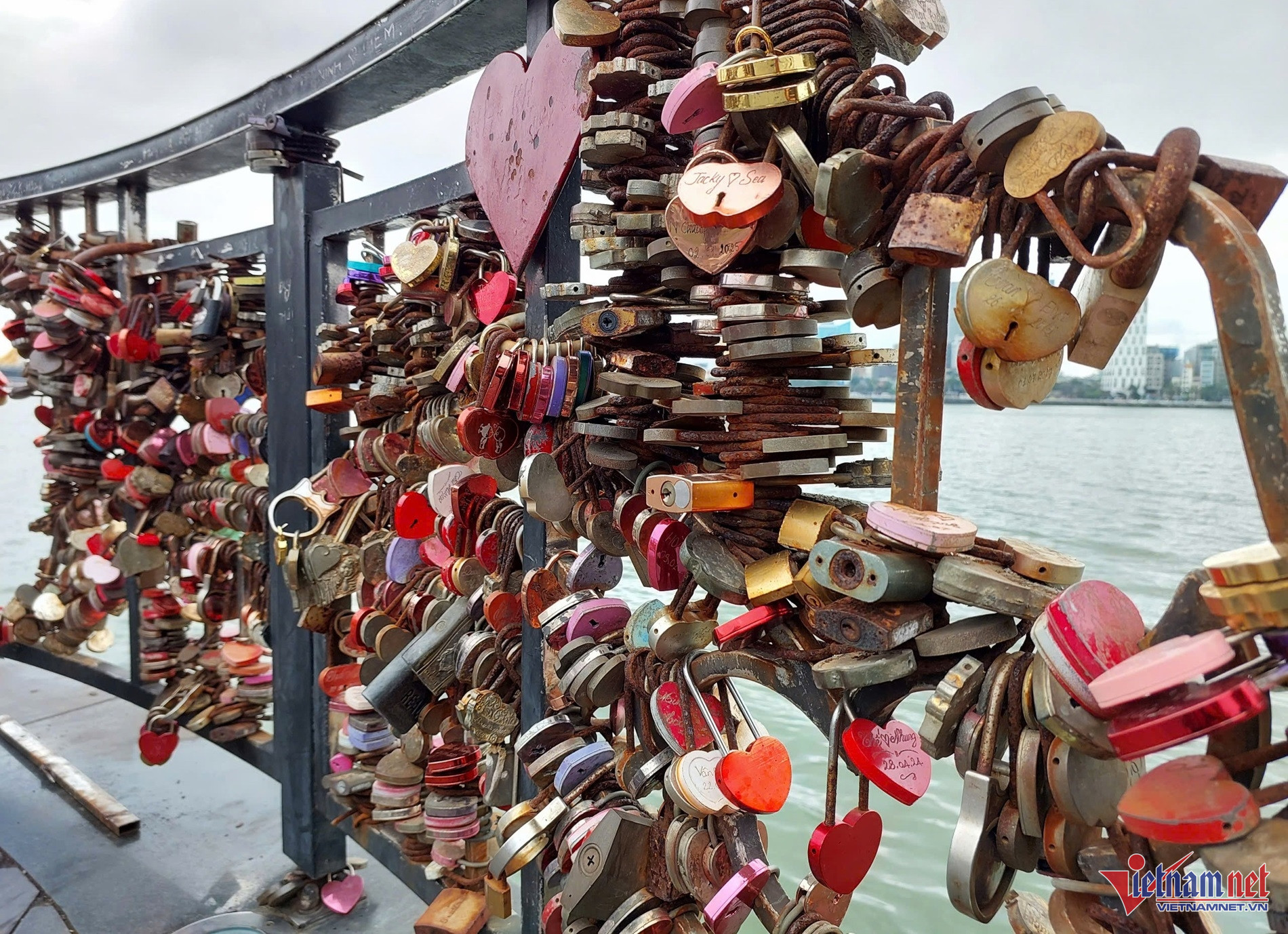 Những ổ khóa đa sắc màu này thường không có chìa để mở với ý nghĩa tình yêu bền vững, thủy chung, không thể tách rời. Hàng ngàn ổ khóa đã được các cặp đôi gắn chặt vào thành cây cầu đặc biệt ở Đà Nẵng.