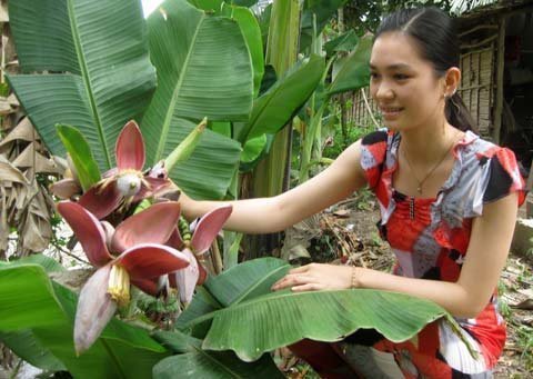 Chị Phượng kể, cây chuối trổ bông đầu tiên cách đây gần 1 tháng, mấy hôm sau chừng 1 tuần, đứa con gái đầu là Phạm Thị Kim Thoa đi học về, ra xem buồng chuối thì phát hiện cây chuối trổ thêm 4 buồng nữa.