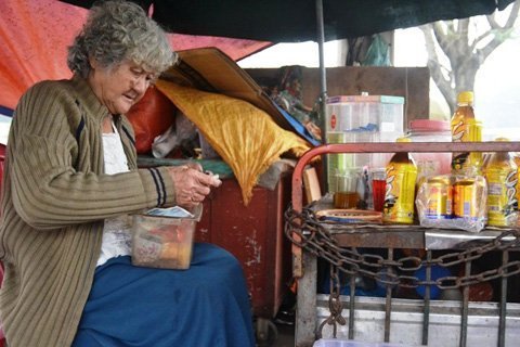 Khách đến quán bà uống nước chủ yếu là mấy anh xe ôm, người quét rác… Ở đây, chẳng ai không biết đến hoàn cảnh của bà cụ kiếm tiền nuôi con nghiện ở tuổi “gần đất xa trời”.
