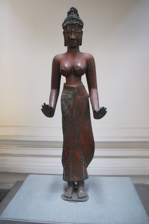 | Bức tượng đồng được tìm thấy tại Đồng Dương năm 1978, trên tay có hai quả lựu đã được chính quyền địa phương giữ lại làm vật “bảo bối” truyền lại đến 7 đời chủ tịch |