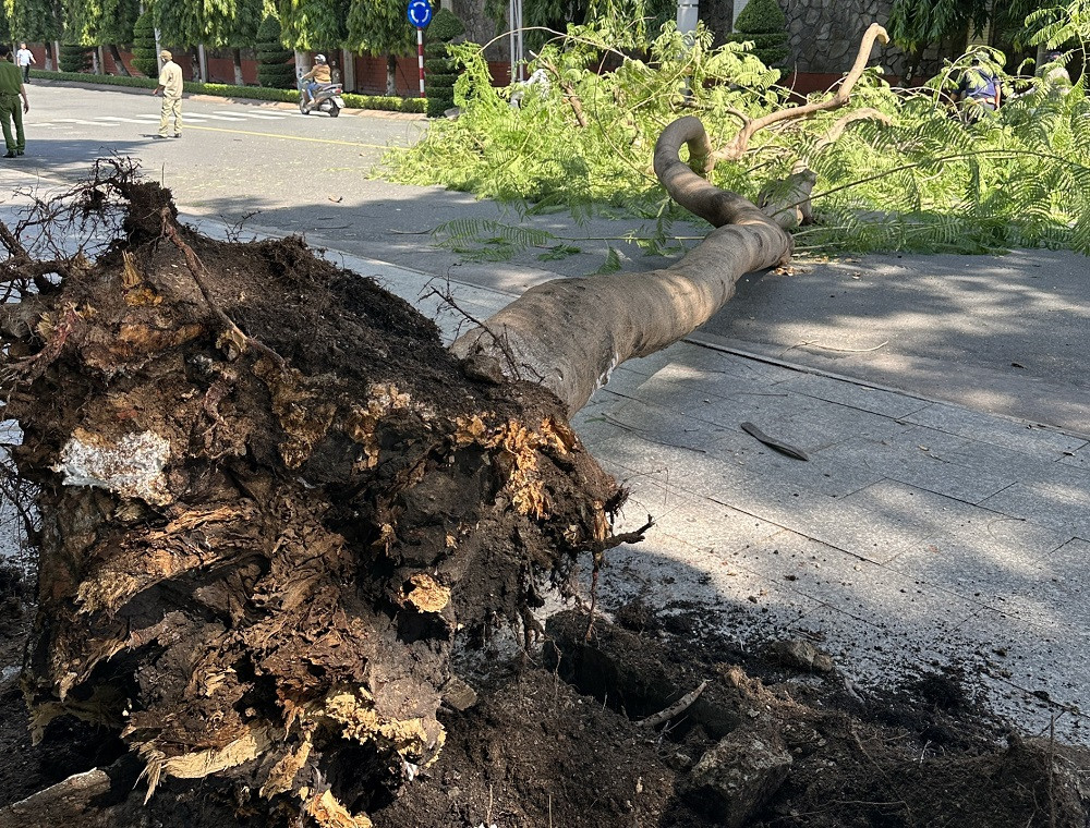 Do cây xanh cao lớn nên khi đổ xuống đường đã chắn ngang khiến các phương tiện không thể di chuyển qua khu vực này.