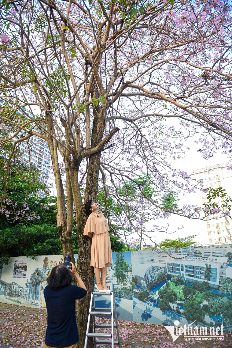 Cây hoa phong linh hồng nằm “cô đơn” tại một góc đường trong Khu đô thị Thành phố Giao Lưu, Phạm Văn Đồng, Hà Nội đang thu hút rất đông người dân và du kháchCây hoa nở rộ khiến nhiều người đi qua phải dừng xe lại chiêm ngưỡng, chụp ảnhMột du khách chuẩn bị rất kĩ trang phục, phụ kiện và mang theo thang để có thể chụp những tấm ảnh ưng ý với hoa phong linh.