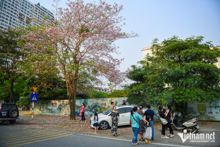 Vài ngày qua, cây phong linh “cô đơn” này được nhiều người yêu thích. Đây có thể là điểm check-in lý tưởng với nhiều người trong dịp nghỉ lễ 10/3 Một gia đình vô tình đi ngang qua đã dừng lại để chụp tấm ảnh kỉ niệm bên cây hoa phong linh hồng cho con trai 17 tháng tuổi“Loài hoa này đẹp mong manh khiến tôi thấy thổn thức. Tôi nhờ con gái đi cùng để ghi lại những khoảnh khắc đẹp của hai mẹ con. Những bông hoa rụng xuống vỉa hè, ô tô xung quanh… tạo thành bối cảnh chụp ảnh lãng mạn”, chị Tân Phan chia sẻNhiều bạn trẻ đi hàng chục cây số để tới “săn hình” cây phong linh hồng đang sốt trên mạng xã hội. “Mình và bạn thân đi từ Đại học Kinh tế Quốc dân qua đây. Quãng đường khá xa nhưng hai đứa muốn trải nghiệm một không gian mới lạ. Cây hoa này nở rộ, đẹp lắm. Nếu có cả con đường trồng phong linh hồng thì không khác gì đường hoa anh đào ở Nhật Bản”, Thùy Linh (Hai Bà Trưng, Hà Nội) chia sẻPhong linh hoa thường nở vào mùa xuân tại miền Bắc nước ta (tháng 2 - tháng 5). Hoa mọc thành cụm, có hình giống như chiếc chuông. Từ ống chuông, năm cánh hoa xòe rất đẹpXung quanh Khu đô thị Thành phố Giao Lưu có một vài cây phong linh bên hồ, tuy nhỏ hơn nhưng cũng đang nở hoa dày đặc