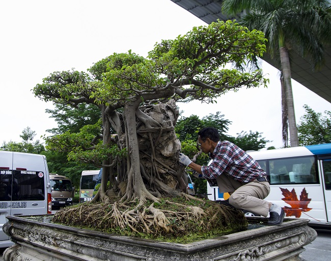 “Nhìn vào tổng thể, cây có nhiều cành nhưng phải tạo hình sao cho thoáng, các thân đối thoại, tương tác với nhau. Mọi mảng khối trên cây đều hướng tới tính thẩm mỹ của điêu khắc và hội họa” – Ông Hùng cho biết.