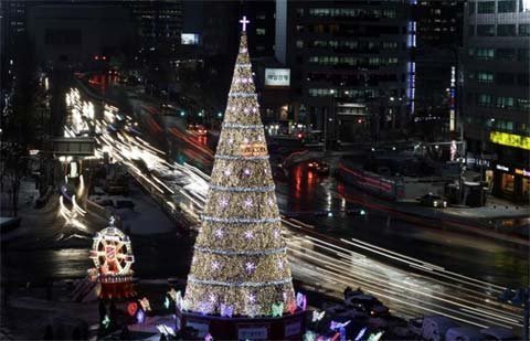 Cây thông Noel đón chào Giáng sinh trước Tòa Thị chính Seoul, Hàn Quốc. (Ảnh: AP)