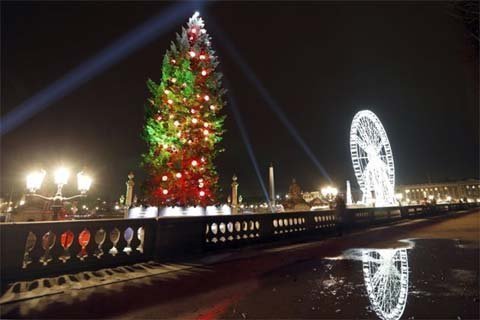 Cây thông cao 32m lung linh ở Place de la Concorde, Paris. (Ảnh: Reuters)