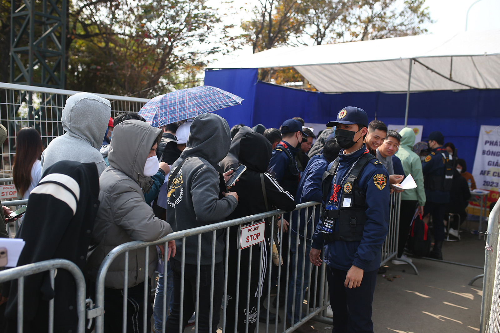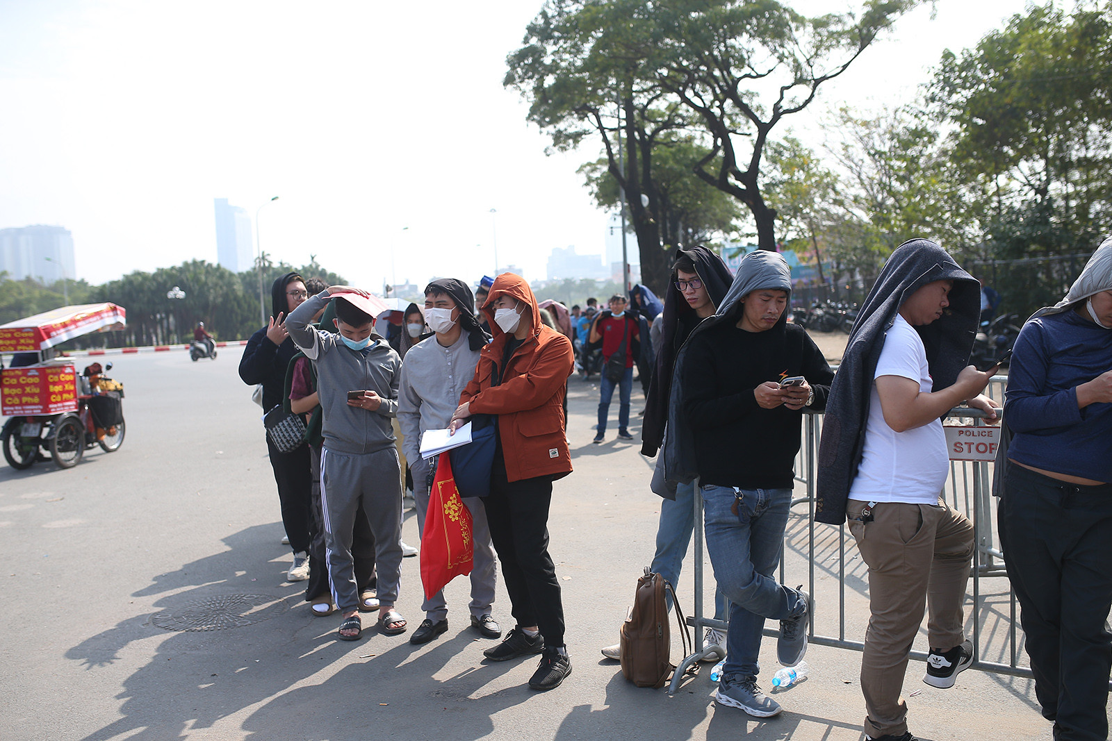 Hàng trăm người hâm mộ xếp hàng dài, đội nắng chờ lấy vé chung kết lượt đi AFF Cup giữa tuyển Việt Nam vs Thái Lan.