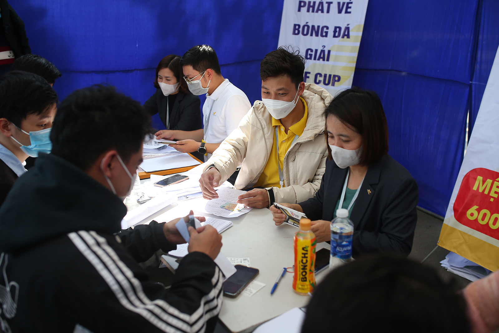 Sáng 12/1, VFF tiến hành trả vé cho khán giả đặt vé online. Trước đó, trong ngày 11/1, VFF trả vé theo đường công văn. Theo ghi nhận, so với trận bán kết, người hâm mộ dành sự quan tâm lớn hơn nhiều ở trận chung kết. Điều này cũng dễ hiểu bởi tuyển Việt Nam đấu kình địch Thái Lan được dự báo hấp dẫn và kịch tínhHàng trăm người xếp hàng dài từ sáng sớm trên đường Lê Quang Đạo. Nhiều CĐV cho biết họ phải chờ tới 4 tiếng đồng hồ mới lấy được vé. Theo quy định, mỗi CĐV chỉ được mua tối đa 4 vé qua kênh onlineCũng như trận bán kết, VFF bán vé với 4 mệnh giá là 400 nghìn đồng, 600 nghìn đồng, 800 nghìn đồng và 1 triệu đồng. Sau khi bắt đầu mở bán, chỉ trong vòng vài giờ đồng hồ, hệ thống thông báo đã bán hết sạch vé trận chung kết lượt đi AFF Cup 2022.BTC phân làm 2 luồng để các CĐV lấy vé nhanh hơn. Những CĐV lấy vé mệnh giá 400 nghìn xếp thành một hàng, còn lại là các mệnh giá cao hơnLực lượng bảo vệ có mặt khá đông để làm nhiệm vụ. Dù các CĐV phải chờ đợi lâu nhưng không xảy ra tình trạng chen lấn, xô đẩyCác CĐV phải hoàn thành các thủ tục trước khi nhận vé. Những ai không trực tiếp lấy vé phải có giấy ủy quyềnNhiều CĐV sau khi lấy vé đã bán cho người khác để lấy tiền chênh lệch. Theo ghi nhận, giá vé trận chung kết giữa tuyển Việt Nam vs Thái Lan không thực sự sốt. Vé đẹp nhất tại khán đài A, cửa 2, tầng 2, được bán với giá 4 triệu đồng/ cặp, gấp đôi giá gốc. Các vé còn lại có mức chênh từ 300-400 nghìn đồng/véChợ đen hoạt động ngay trước cổng SVĐ Mỹ Đình. Đây là cơ hội cuối cùng để các phe vé "kiếm ăn"Vũ Thị Liên (Bắc Giang) cho biết cô xếp hàng khoảng 2 tiếng rưỡi để lấy véSân Mỹ Đình có sức chứa hơn 4 vạn chỗ ngồi nhiều khả năng sẽ được lấp kín. Đây là trận đấu cuối cùng của HLV Park Hang Seo trên cương vị tuyển Việt Nam, vì thế người hâm mộ rất muốn được tri ân ông thầy Hàn Quốc. Trận đấu giữa tuyển Việt Nam vs Thái Lan diễn ra vào lúc 19h30 ngày 13/1. Sau đó 3 ngày, thầy trò HLV Park Hang Seo đá trận lượt về tại Thammasat.