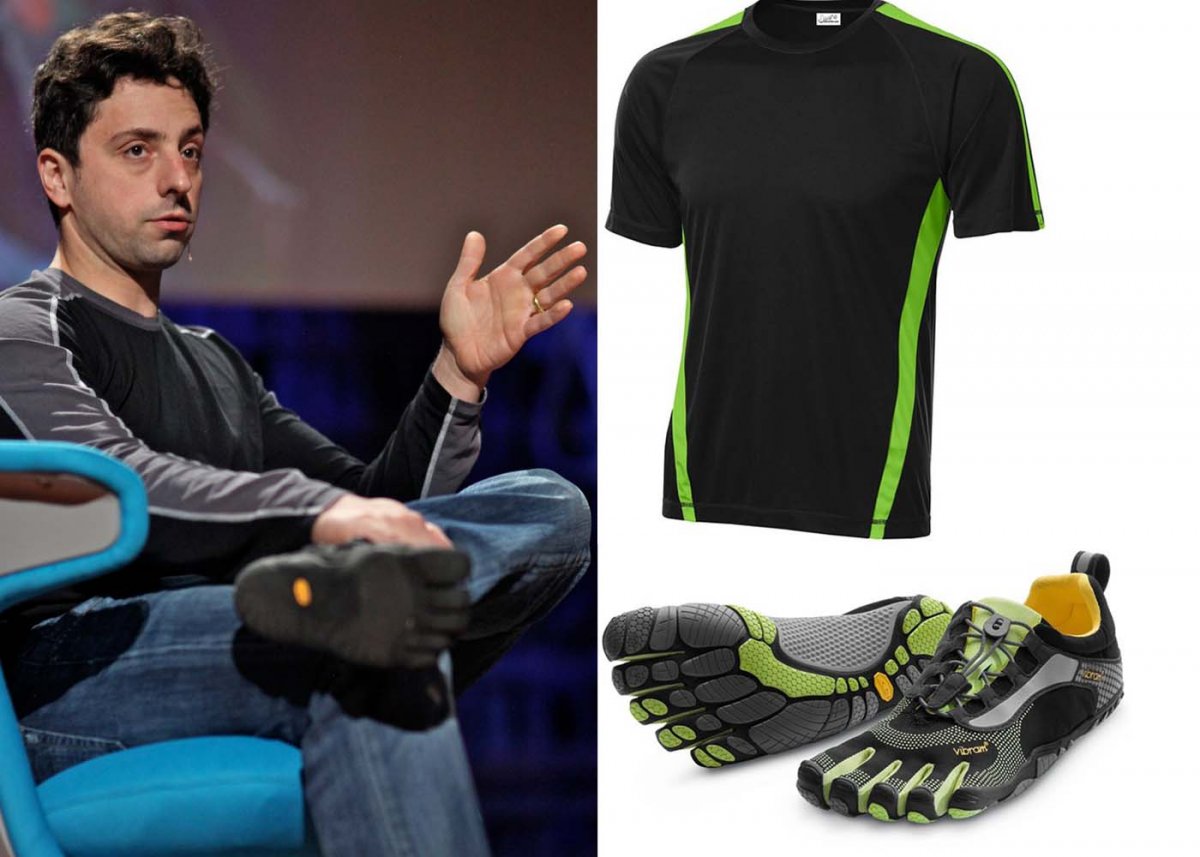 Đồng sáng lập Sergey Brin của Google lựa chọn phong cách thể thao hơn. Đôi giày Vibram FiveFingers của anh có giá 52 USD còn chiếc áo thể thao là 18,96 USD.