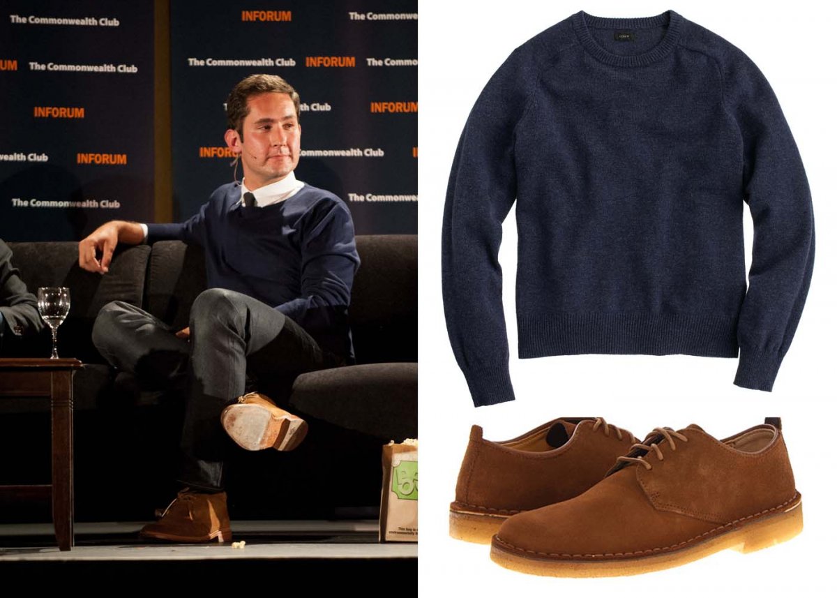 CEO Kevin Systrom của Instagram luôn bóng bẩy và trẻ trung. Chiếc áo len J. Crew của ông có giá 70 USD và đôi giày này giá 120 USD.