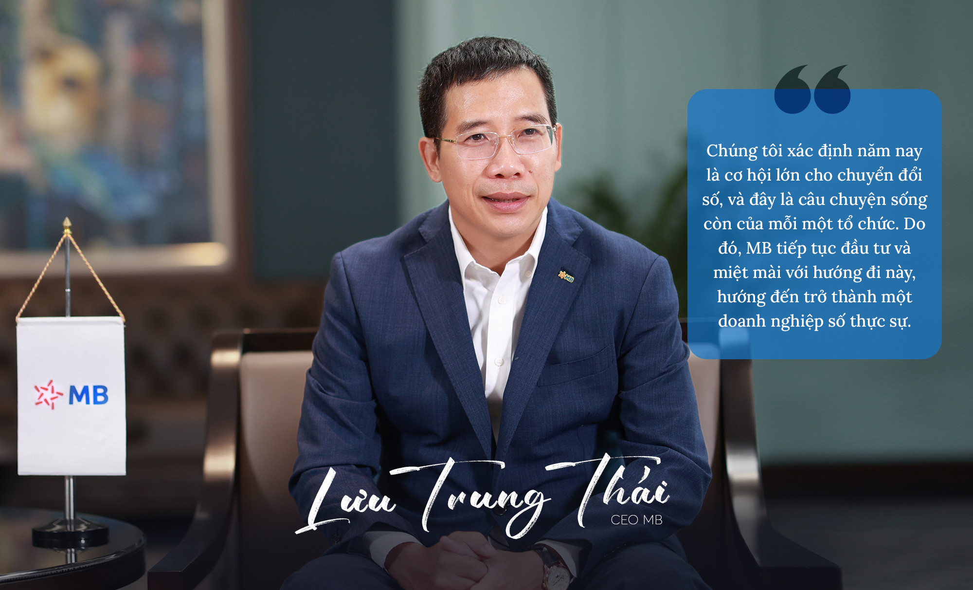 MB sẽ vẫn duy trì việc đầu tư cho chuyển đổi số. Nhân sự MB đã có "gen" này nên sẽ tiến nhanh về phía trước. Qua đó, MB sẽ từng bước hiện thực hóa mục tiêu trở thành một công ty công nghệ, doanh nghiệp số.