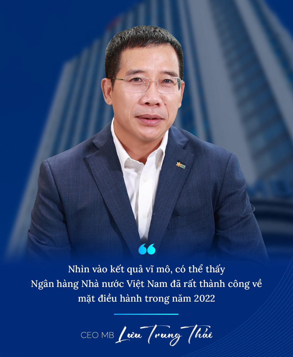 MB là một trong những ngân hàng đã xuất sắc về đích trong năm 2022 với vị trí top 5 về lợi nhuận, top đầu về tỷ suất sinh lời trên vốn và nằm trong top đầu về các chỉ số an toàn, chất lượng tín dụng. Đồng thời, MB nằm trong nhóm những ngân hàng đóng góp nhiều nhất cho ngân sách. Đánh giá về năm 2023, ông Lưu Trung Thái, Phó chủ tịch Hội đồng quản trị kiêm Tổng giám đốc MB cho rằng, năm nay sẽ là một năm thực sự khó, tuy nhiên vẫn có nhiều cơ hội. Ông kỳ vọng Việt Nam nói chung, hệ thống ngân hàng nói riêng, trong đó có MB, sẽ tận dụng được các cơ hội để phát triển bền vững và bứt phá.