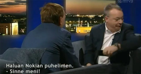 Màn đối đáp và hành động ngẫu hứng của Elop diễn ra khá hài hước. Sau hành động có phần gây sốc của mình, Elop đã hứa với Harkimo rằng ông sẽ nhận được một chiếc smartphone của Nokia để thay thế cho chiếc iPhone của mình.