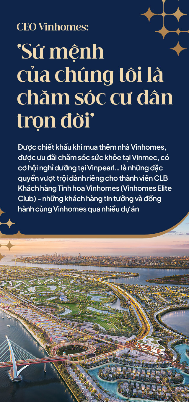 - Cùng với việc ra mắt Vinhomes Elite Club và 2 CLB Sống Vui Khỏe, Sống Xanh - Văn minh - Đẳng cấp, Vinhomes cũng đưa ra lý tưởng “chăm sóc cư dân trọn đời”. Bà có thể chia sẻ cụ thể hơn về lý tưởng khác biệt này và Vinhomes đang chuẩn bị nguồn lực ra sao để hiện thực hóa lý tưởng đó?