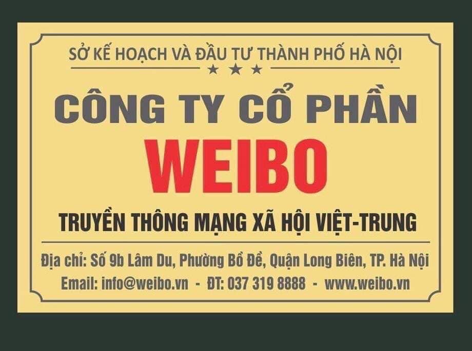 Ngày 8/8 vừa qua, trên mạng xã hội Facebook đã bất ngờ xuất hiện một bảng hiệu công ty do Sở kế hoạch và Đầu tư thành phố Hà Nội cấp phép có tên “công ty cổ phần Weibo – Truyền thông mạng xã hội Việt – Trung”, điều này đã khiến cho rất nhiều người cho rằng ông lớn mạng xã hội Weibo của Trung Quốc đã vào Việt Nam. Tuy nhiên, trao đổi với ICTnews, anh Nguyễn Lê Minh Quân, CEO của Weibo JSC cho biết, đây là công ty 100% vốn Việt Nam và không liên quan gì đến Trung Quốc. Ngoài ra, công ty cũng chưa có ý định làm về mạng xã hội.