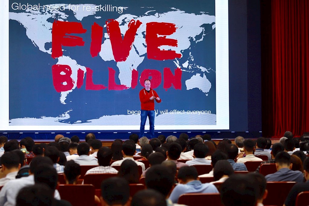 Giáo dục đào tạo phải hướng đến AI và trang bị kỹ năng cần thiết cho giới trẻ. Chúng ta cần trang bị kỹ năng cho 5 tỷ người trên thế giới, cần ứng dụng AI và công nghệ, cần có quy trình. Quy trình ở đây chính là hệ thống giáo dục, là yếu tố để nâng cao kỹ năng, trang bị cho giới trẻ kiến thức để họ theo kịp những thay đổi trong tương lai.