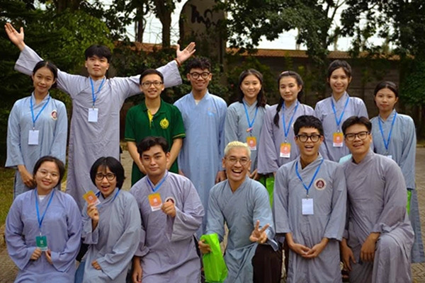 Bạn Bùi Nhựt Thanh (thứ 4 từ phải qua) chia sẻ mình đã học được nhiều điều hay từ khóa tu 2 năm trước tại một ngôi chùa ở TPHCM. Ảnh: Bùi Nhật Thanh cung cấp.
