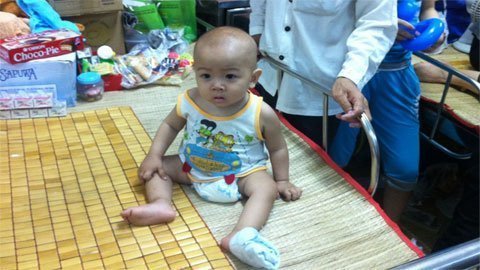 Em bé đáng thương đó là Nguyễn Văn Phát (16 tháng tuổi, 423, thôn Giồng Trôm, xã Ia Lốp, huyện Ea Súp, Đăk Lăk) bị bệnh ung thư máu từ lúc 7 tháng tuổi.