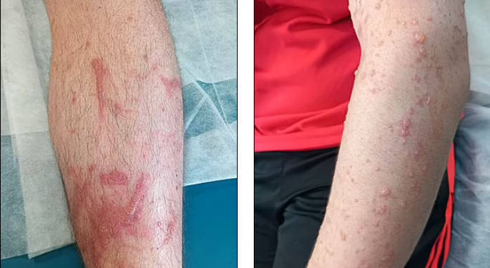 Khi trở về nhà vào buổi tối, anh nhìn thấy những vết phát ban. Đến sáng hôm sau, chúng biến thành vết phồng rộp, lan khắp tay, chân, cổ, khiến anh vô cùng đau đớn. Chàng trai phải nhập viện ngay lập tức.