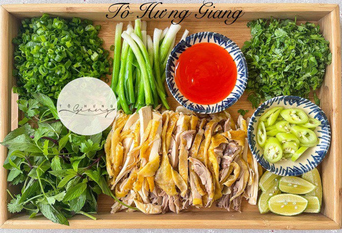 - Khi ăn xếp bánh phở vào bát, thịt gà, hành lá, rau mùi thái nhỏ, đầu hành chần, chan nước dùng thật sôi.
