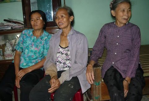 | Bà Trần Thị Tuyết (áo xanh) đau xót khi kể về đứa con trai vốn hiền lành, tử tế nay bỗng phạm tội giết người |