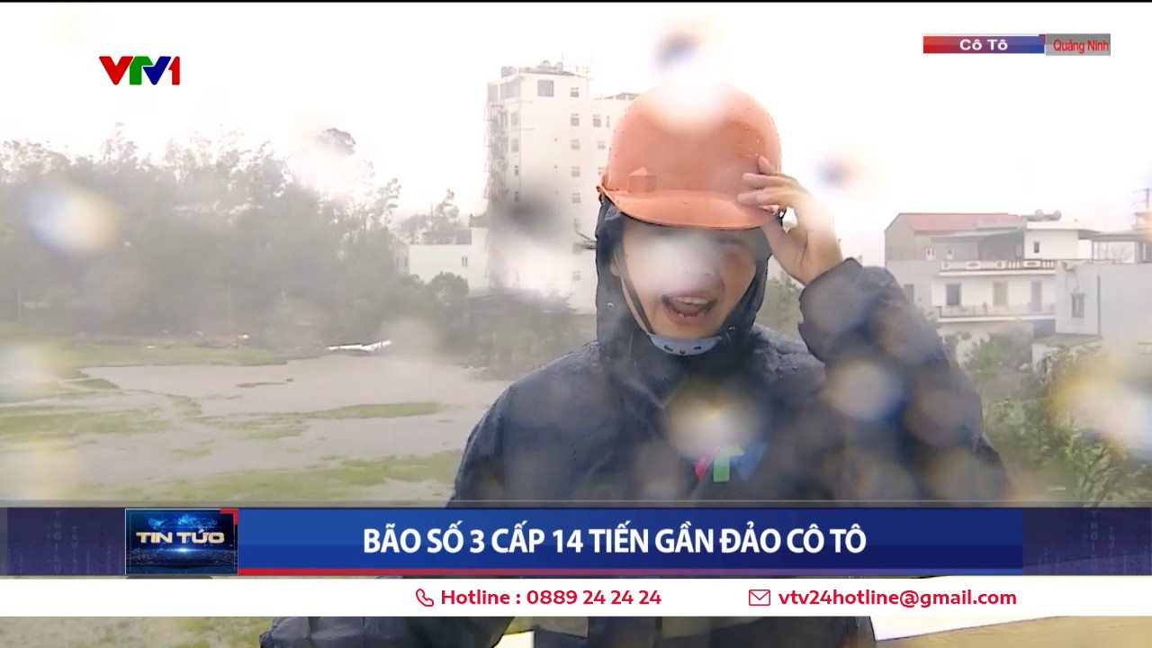 Nữ phóng viên Tùng Thư kiên trì bám trụ ở Cô Tô để đưa tin về siêu bão Yagi. Nhiều lần lên hình, nữ phóng viên không đứng vững, bị nước mưa và gió tạt mạnh vào mặt.