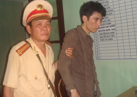 | Thượng tá Lê Đức Đoàn dẫn đối tượng trộm cắp vào trụ sở công an phường Yên Viên. |