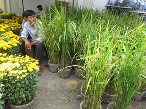 Một chậu bắp kiểng hiện được chào bán với giá 70.000-130.000 đồng, lúa 60.000-80.000 đồng. Anh Thảo, một người bán lúa kiểng cho biết, đây là lần đầu tiên lúa kiểng và bắp kiểng xuất hiện trên thị trường tết, đem đến sự mới lạ cho người mua hoa tết.