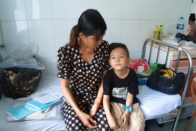 Từ An Giang, 2 mẹ con chị phải chuyển lên thuê trọ ở TP.HCM. Đến nay đã 4 năm, trên cánh tay của em đã gồ lên những u sẹo xấu xí, Hiếu vẫn chưa biết khi nào mình mới thoát khỏi cảnh chạy thận.