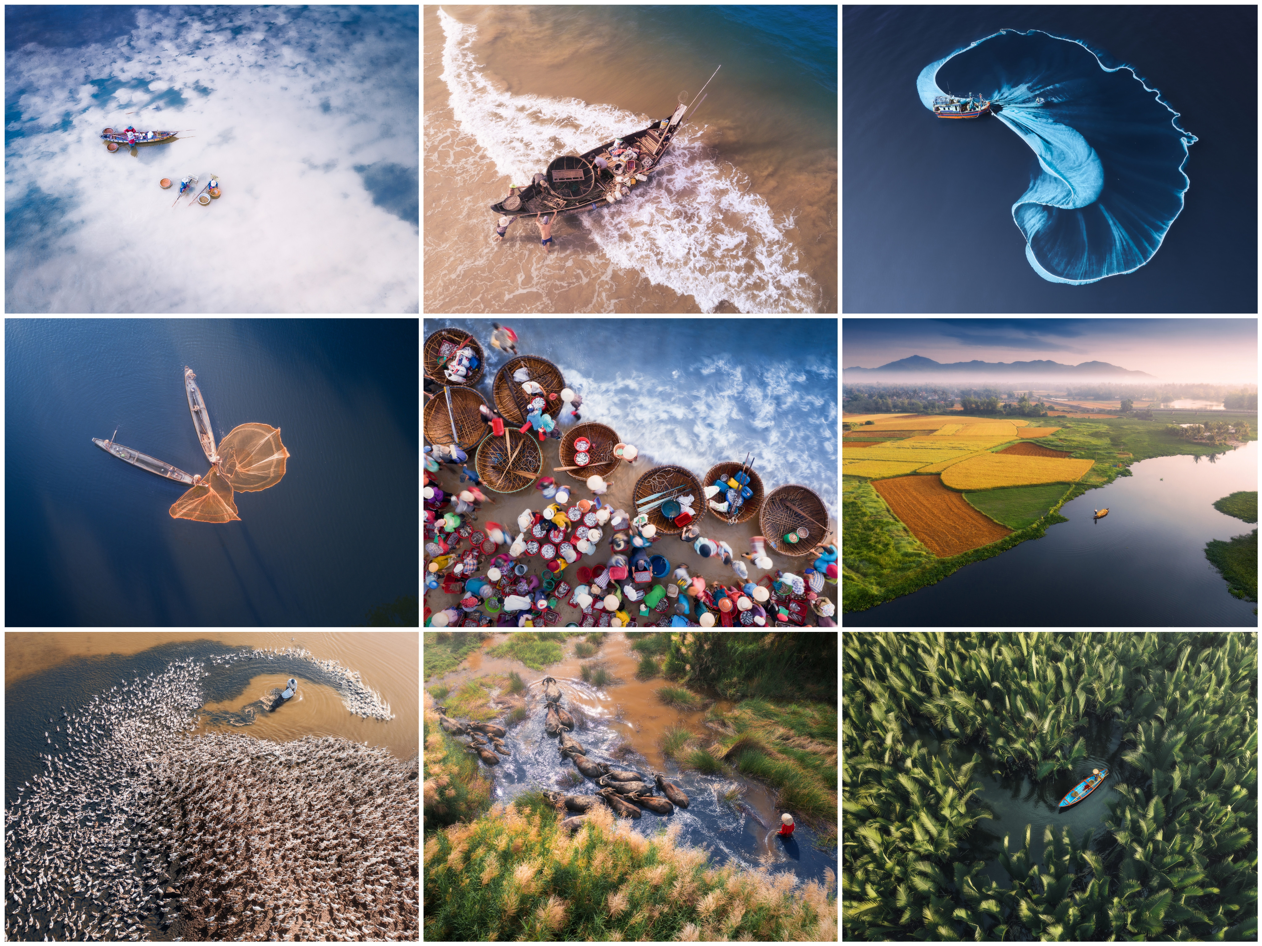 Trong đó, bộ ảnh Water And Life chụp từ trên cao, khắc họa vẻ đẹp miền quê sông nước hay vùng biển gắn liền với cuộc sống con người được anh chụp tại quê nhà Phú Yên và nhiều tỉnh thành khác đã để lại cho anh nhiều ấn tượng nhất.