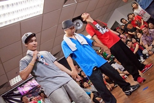 | Vũ Tùng Phương (áo ghi) trong cuộc thi Street Freestyle Dance Battle 1 vs 1 |