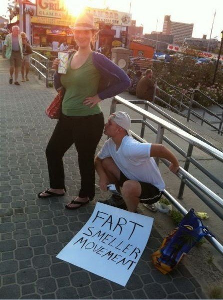 Người đàn ông này xuất hiện trên quảng trường Union, thành phố New York (Mỹ) cùng với tấm biển "Fart smeller movement" (tạm dịch: phong trào ngửi mùi xì hơi".